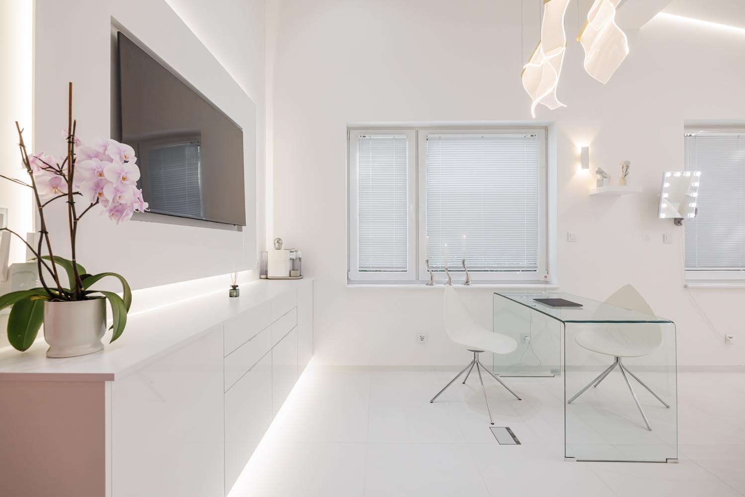 Wewnątrz znajdziesz jasne, minimalistyczne wnętrza, naturalne światło i miękkie faktury, tworzące atmosferę wyciszenia w duchu hygge.
